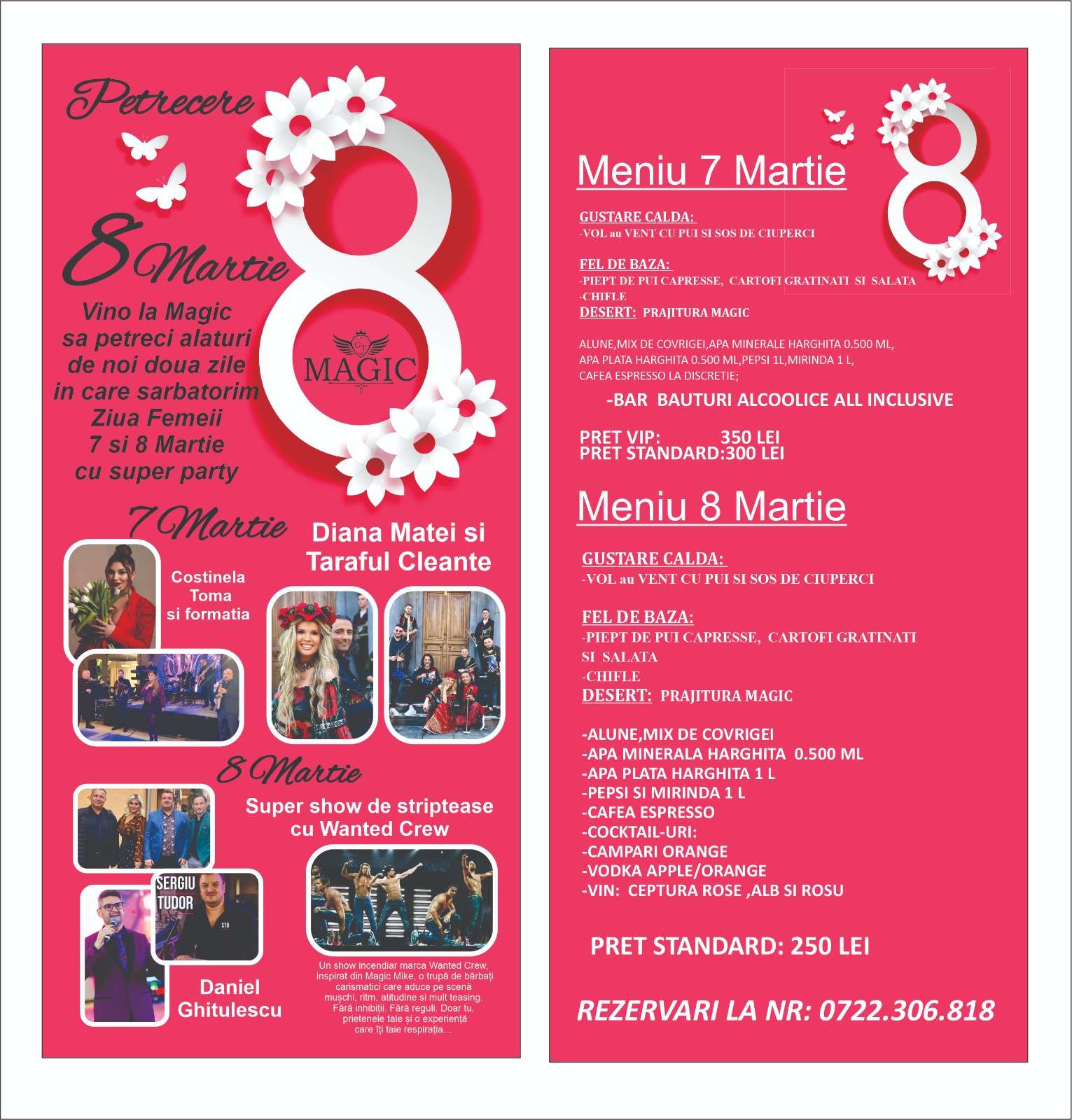 Te asteptam la restaurantul Magic GT, pentru a sarbatori ziua de 7 si de 8 Martie intr-un cadru cu totul special!